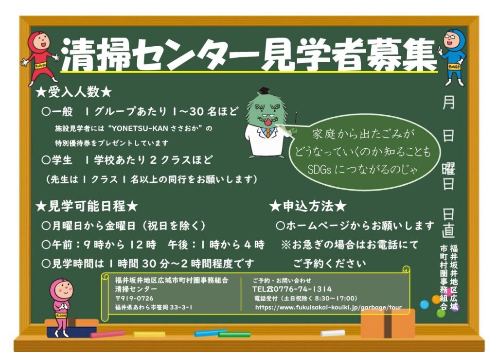 清掃センターでは、環境啓発活動の一環として、施設見学を随時受入れしております。